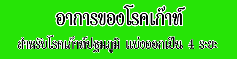 ระยะที่ 1 : เป็นช่วงที่ยังไม่มีอาการ แต่พบระดับกรดยูริกในเลือดสูง ซึ่งยังคงเป็นที่ถกเถียงกันอยู่ครับว่าต้องเข้ารับการรักษาหรือไม่ ขึ้นอยู่ดุลพินิจของแพทย์