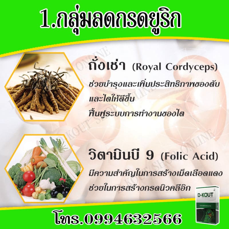 โรคเก๊าท์เกิดจากกรดยูริกในร่างกายที่มีมากเกินไปทำให้กรดยูริกไปเกาะตามข้อต่างๆทำให้เกิดอาการปวดและบวม และ หากมากเกินไปทำให้ไตทำงานหนักและขับออกไม่ทัน จึงมีผลทำให้ไตทำงานหนักและมีความเสี่ยงเป็นโรคไตเสื่อมได้รวมถึง นิ่วในได้ด้วยเช่นกัน เพราะไตมีหน้าที่หลักในการขับของเสียออกจากร่างกาย ขาดระบบที่ขับของเสียออกจากร่างกายทำงานไม่เต็มประสิทธิภาพแล้ว โรคต่างๆก็จะตามมามากมายด้วยเช่นกัน
